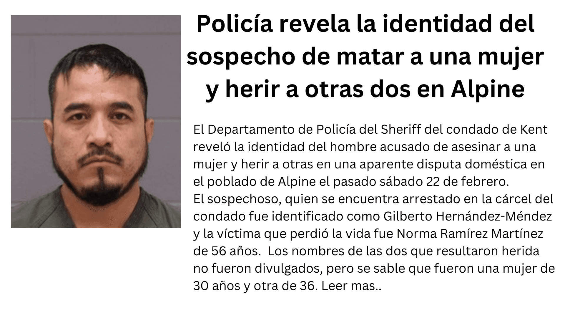 Policía revela la identidad del sospecho de matar a una mujer y herir a otras dos en Alpine