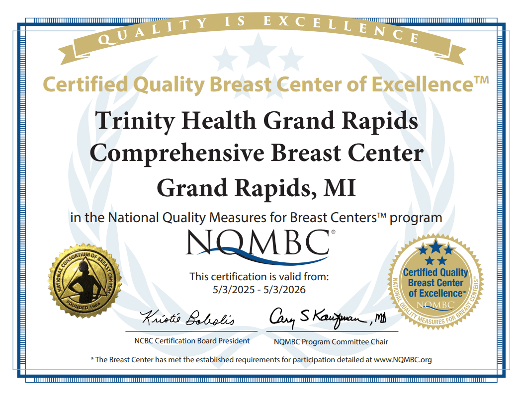 Reconocen a Trinity Health Grand Rapids como Centro de Excelencia en el cuidado del cáncer de mama